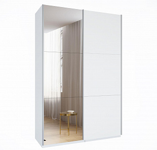 Шкаф-купе с зеркалом ЛАЙТ Е1, 240х160х58, ЛДСП, Белый перламутр, с ящиками, полками и штангами
