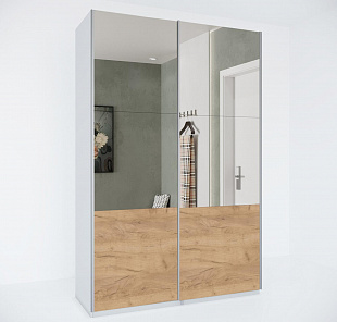 Шкаф-купе с зеркалом сверху ЛАЙТ Е2, 240х160х58, ЛДСП, Дуб золотой, с полками и штангами